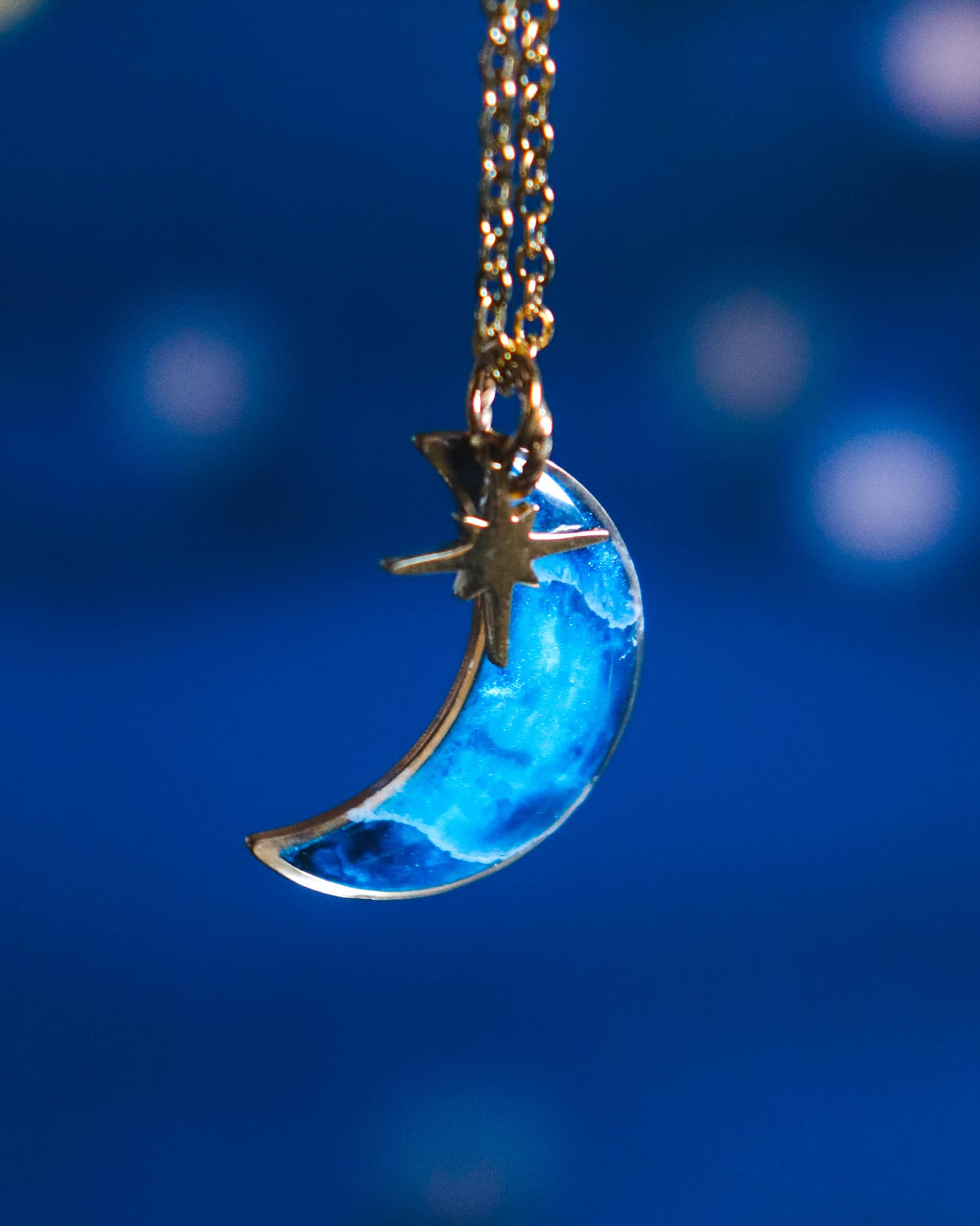 ✨ Veillez à garder votre bijou à l’abri de l’eau et de l’humidité, afin qu’il ne s’abîme pas. Évitez de le laisser trop longtemps au soleil : les UV font jaunir la résine avec le temps.