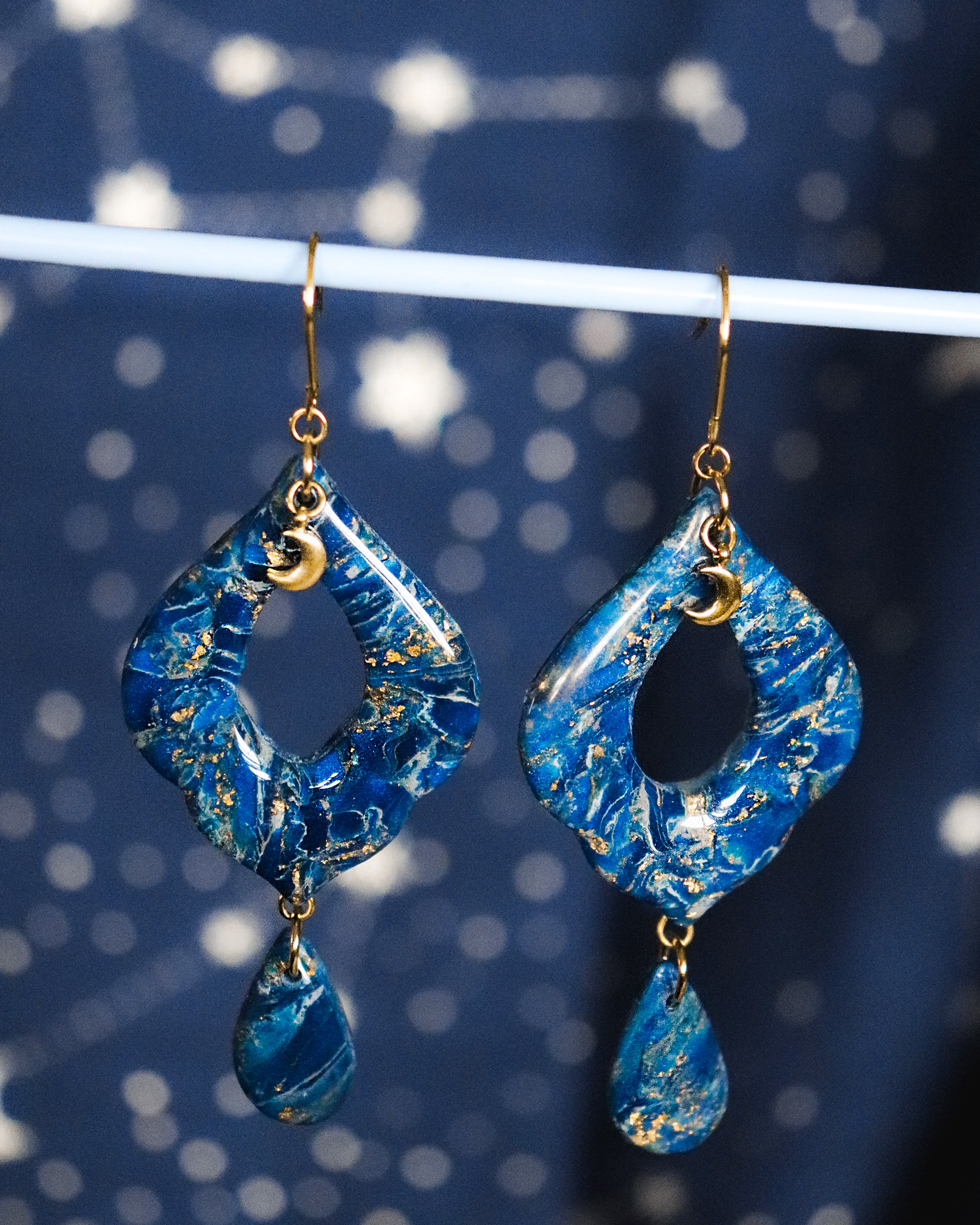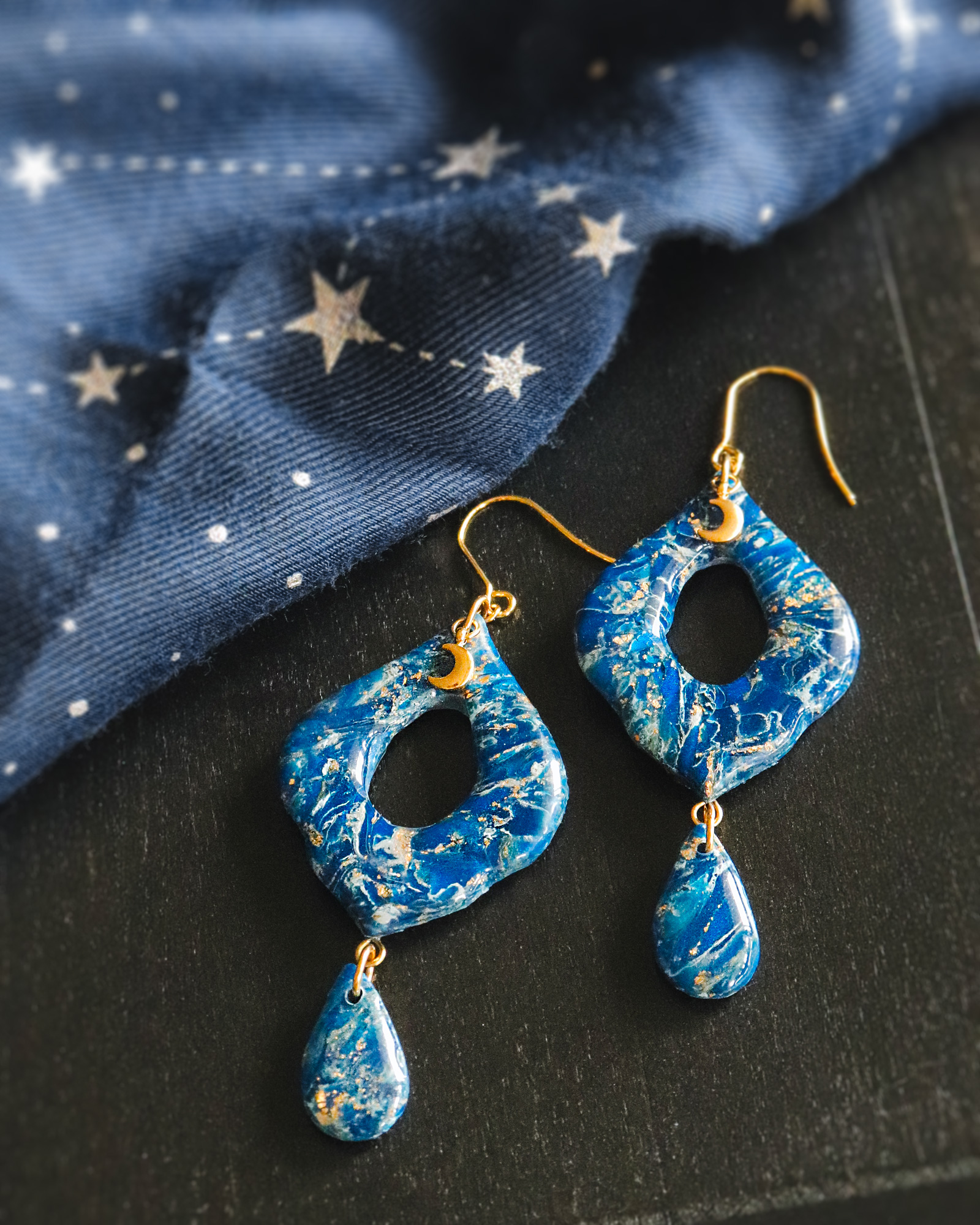 Des boucles d’oreilles modernes et extravagantes pour les amoureuses du bleu, avec une touche de doré.