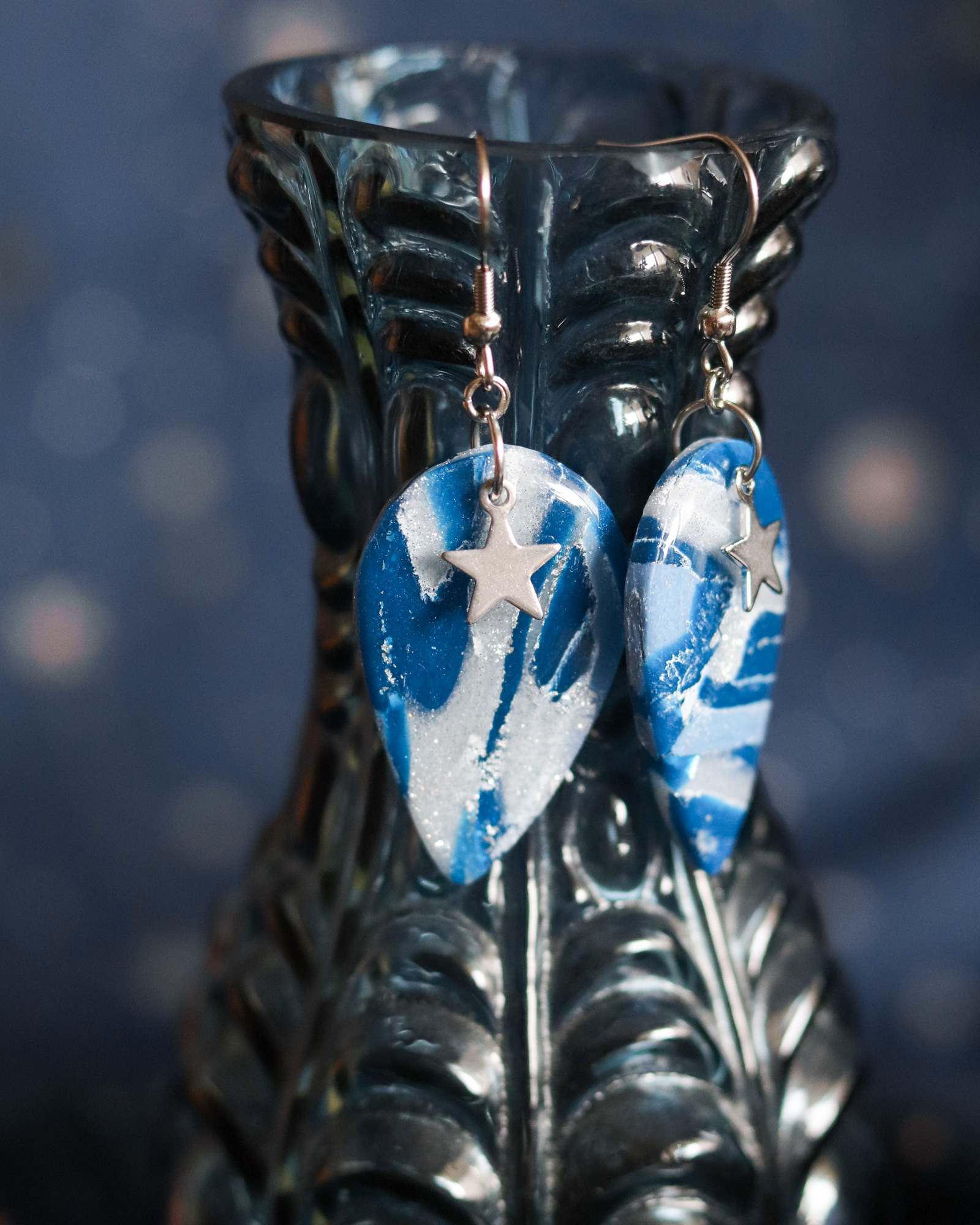 Des boucles d’oreilles modernes et étoilées pour les amoureuses du bleu.