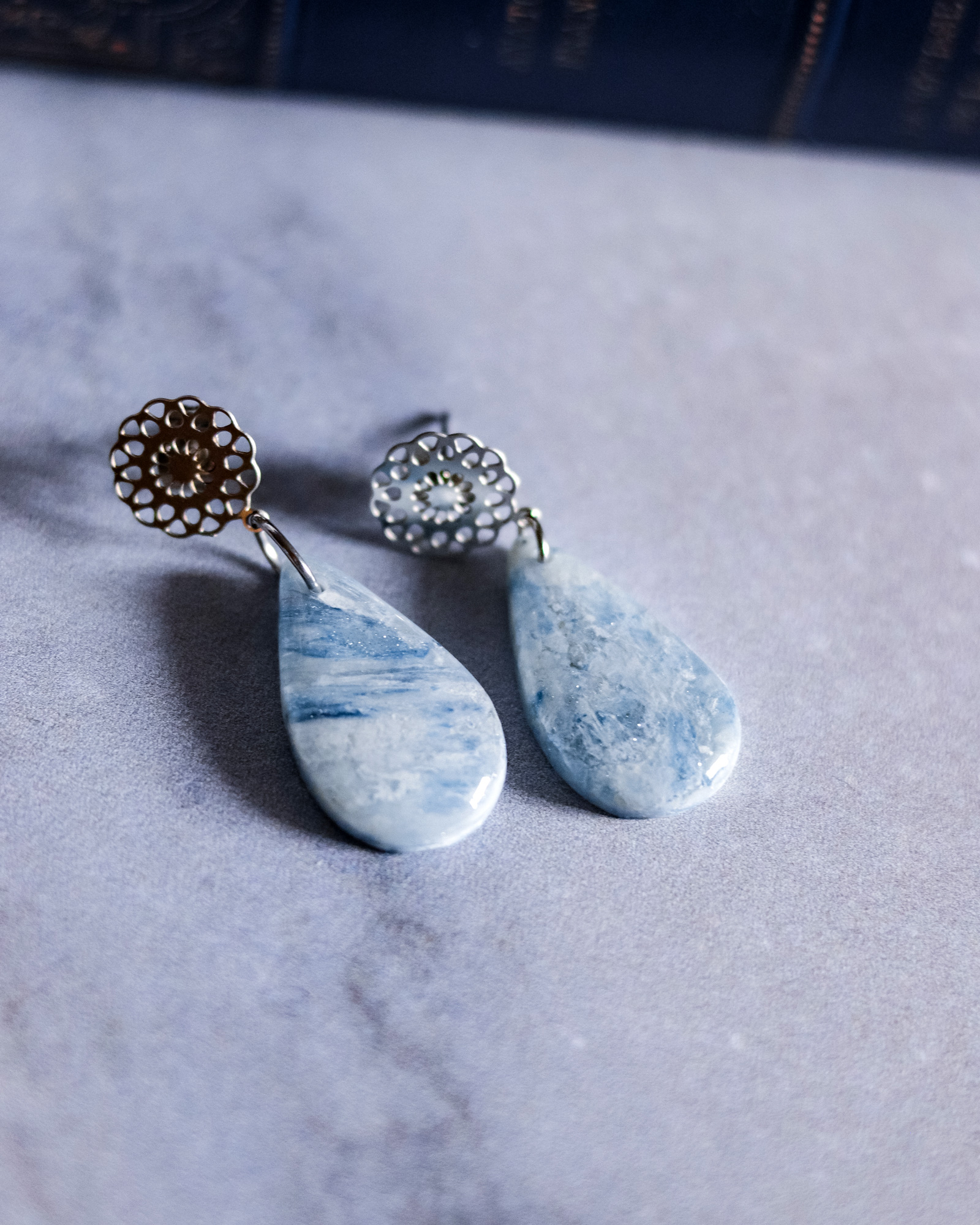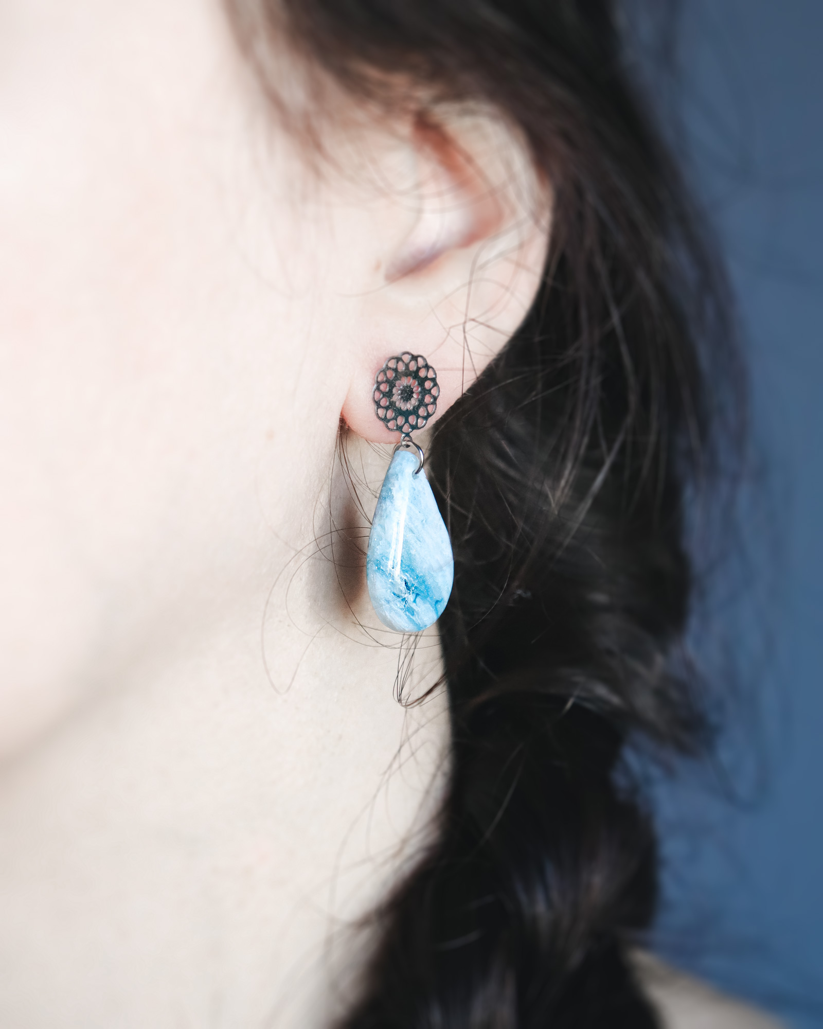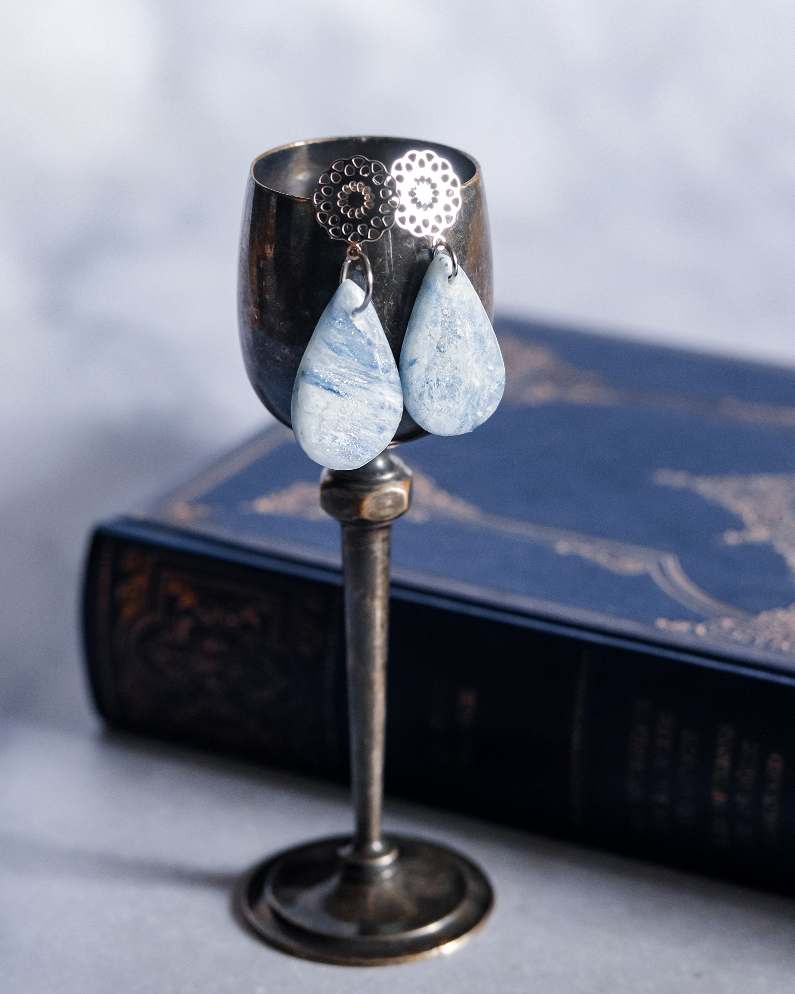 Ajoutez une touche de fantaisie glacée à votre quotidien avec ces boucles d’oreilles hivernales. De douces nuances bleues et blanches, un rien de scintillement, et vous voilà parée comme une fée des neiges parée de sa magie. Des bijoux délicats et précieux, faits-main, pour celles qui ont constamment la tête dans les étoiles (ou dans les livres).