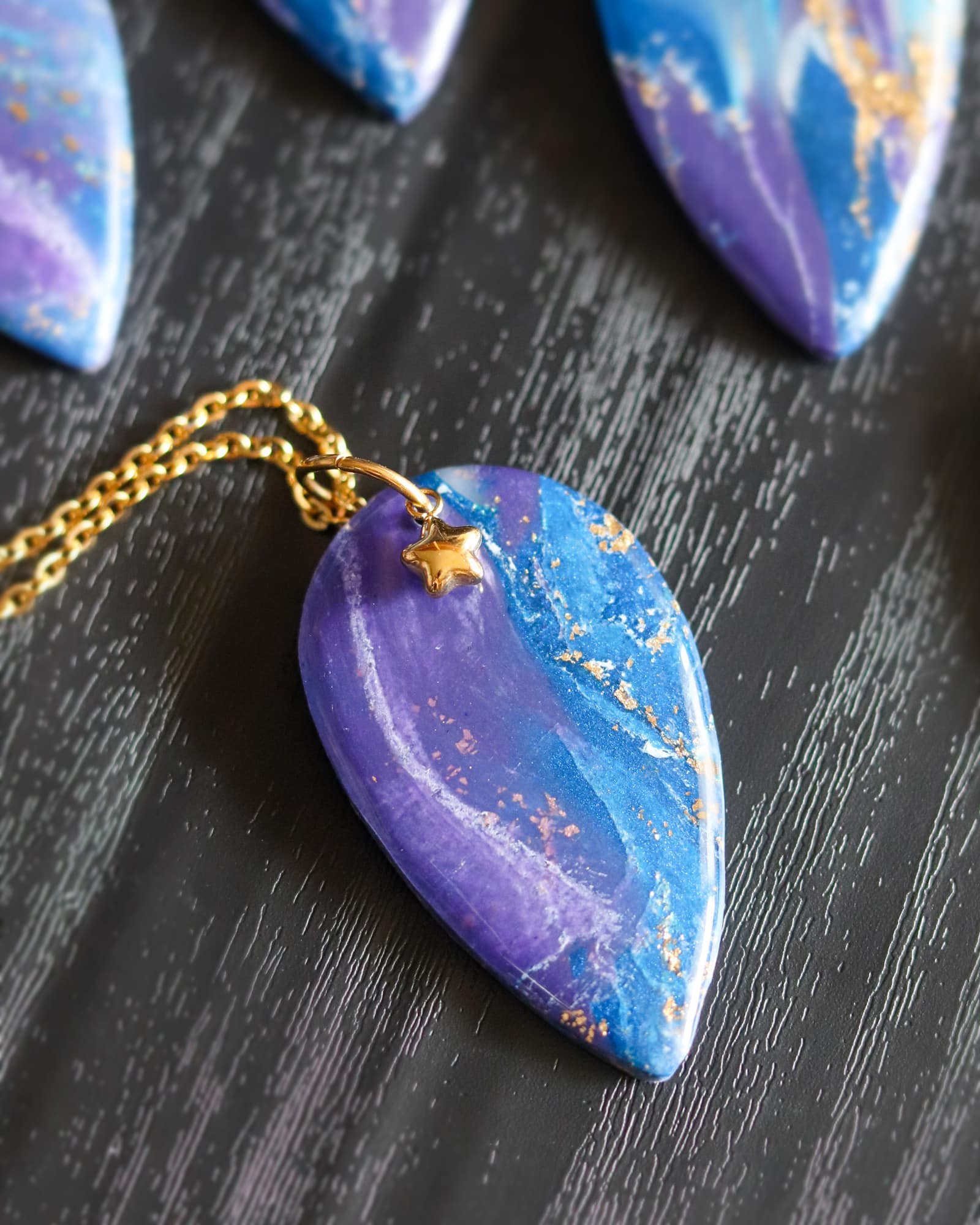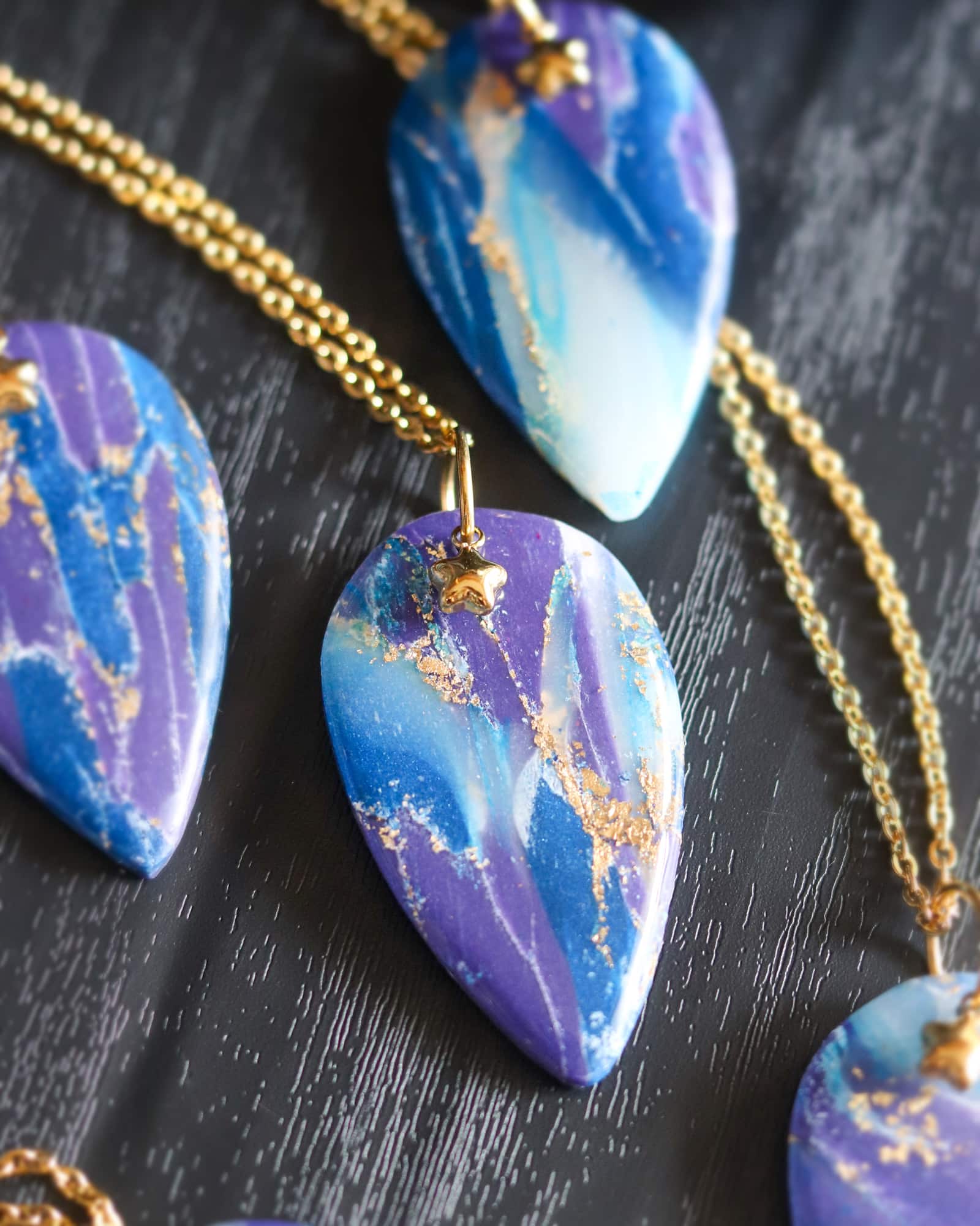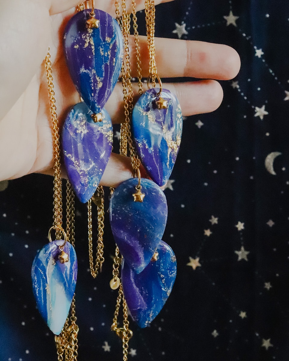 - Matières du pendentif : résine, pâte polymère, acier