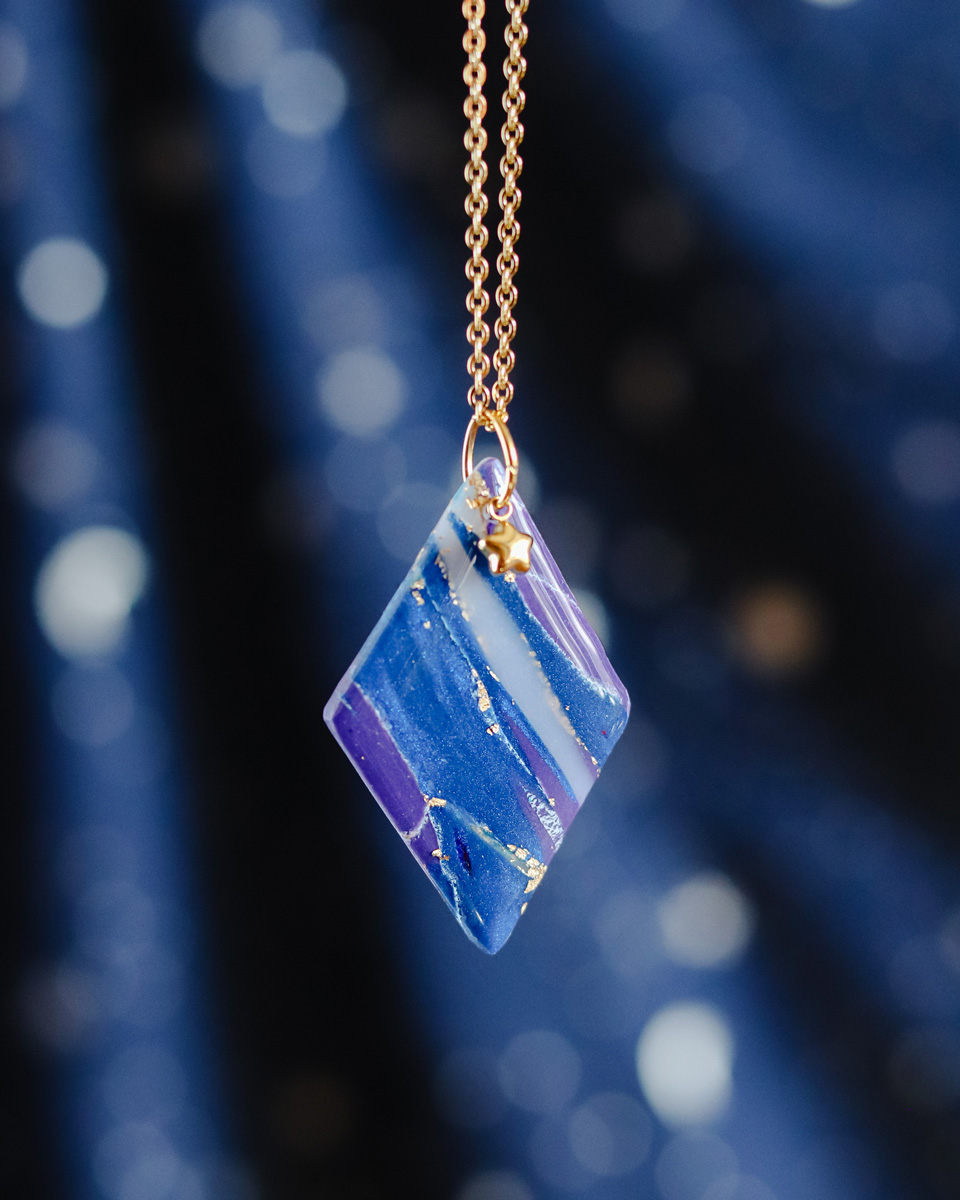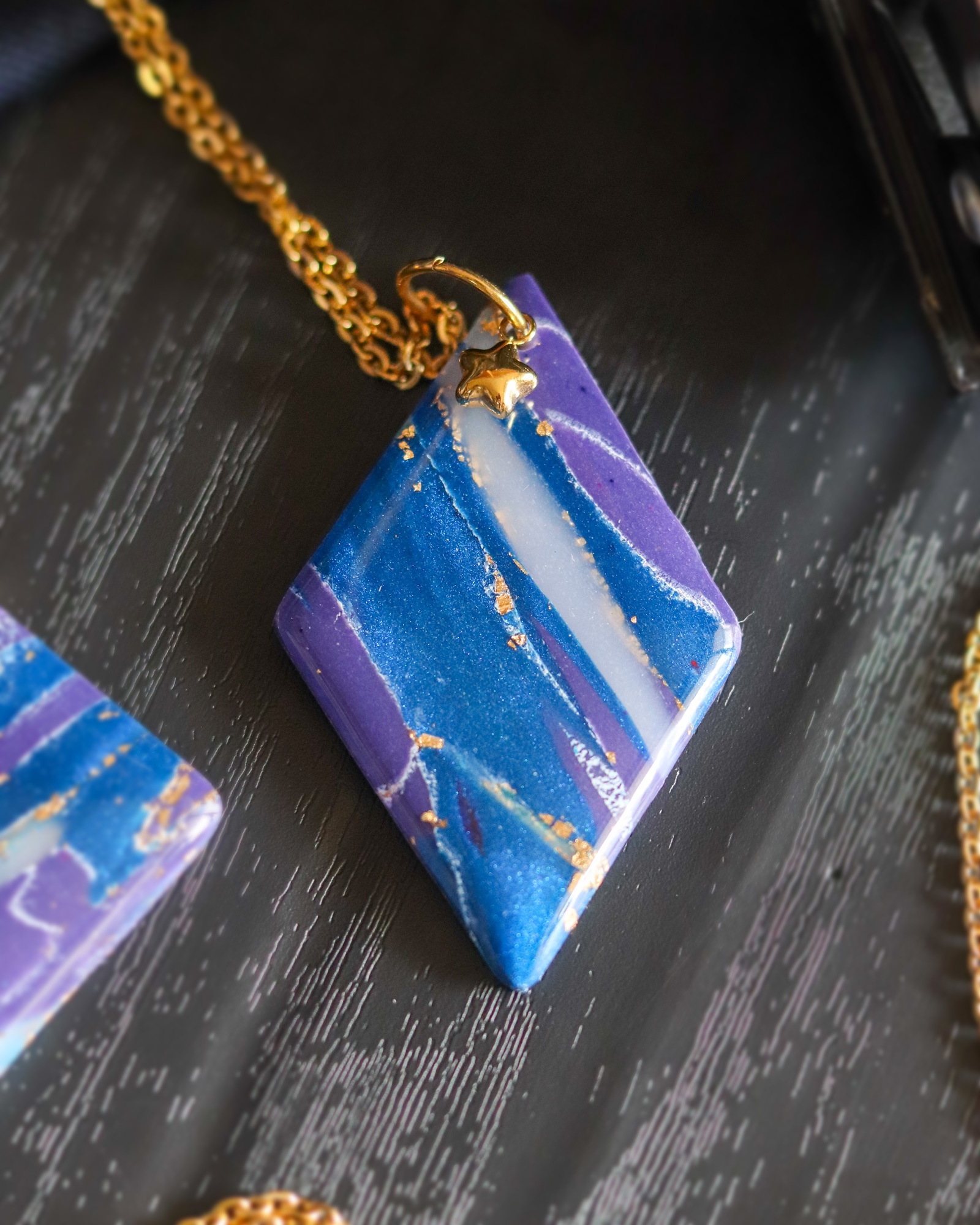 Un collier à la fois moderne et précieux pour les amoureuses du bleu et du violet.