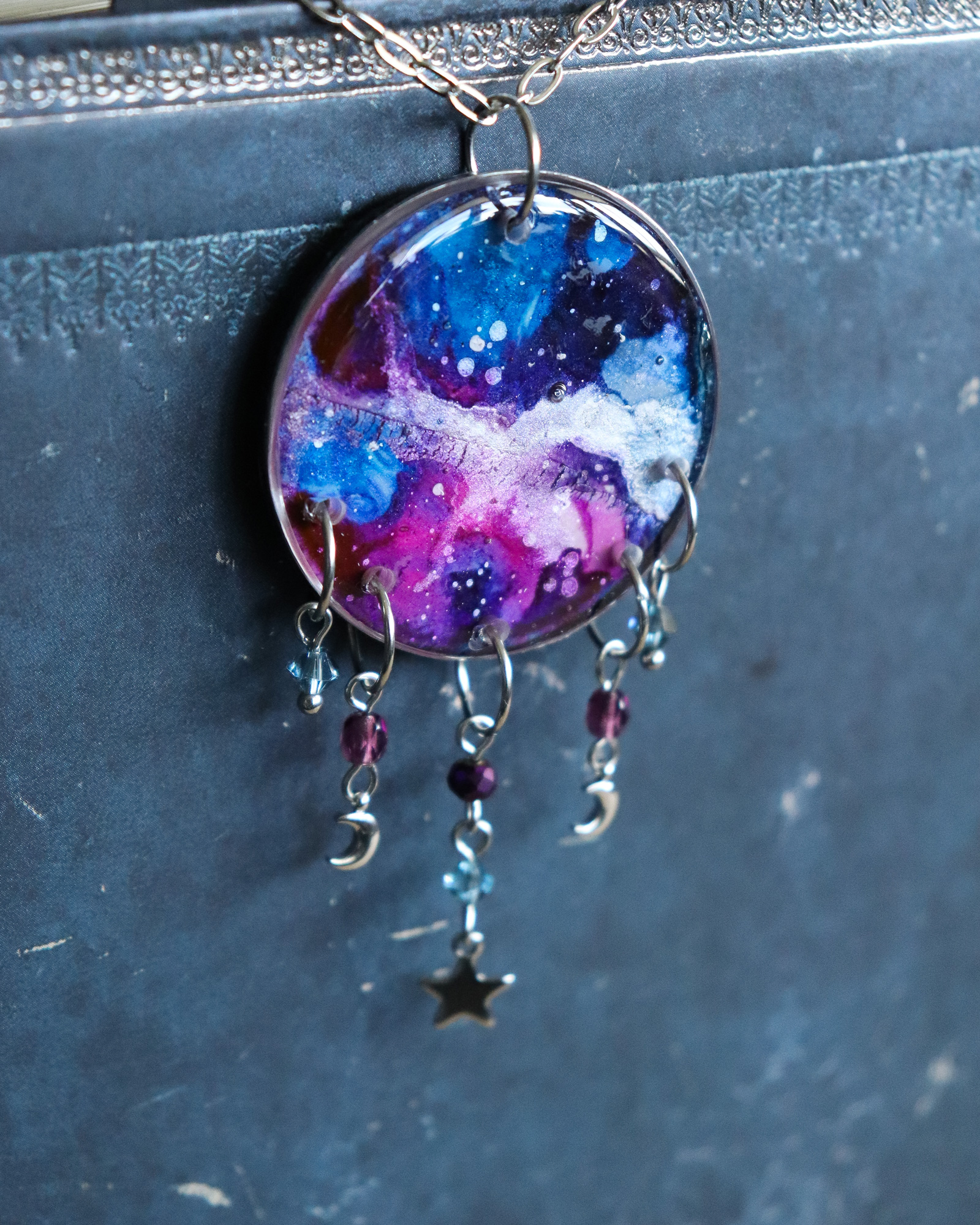 Et si vous portiez une nébuleuse autour du cou ? Voici un pendentif original et entièrement fait main pour les amoureux des étoiles et de l’espace.
