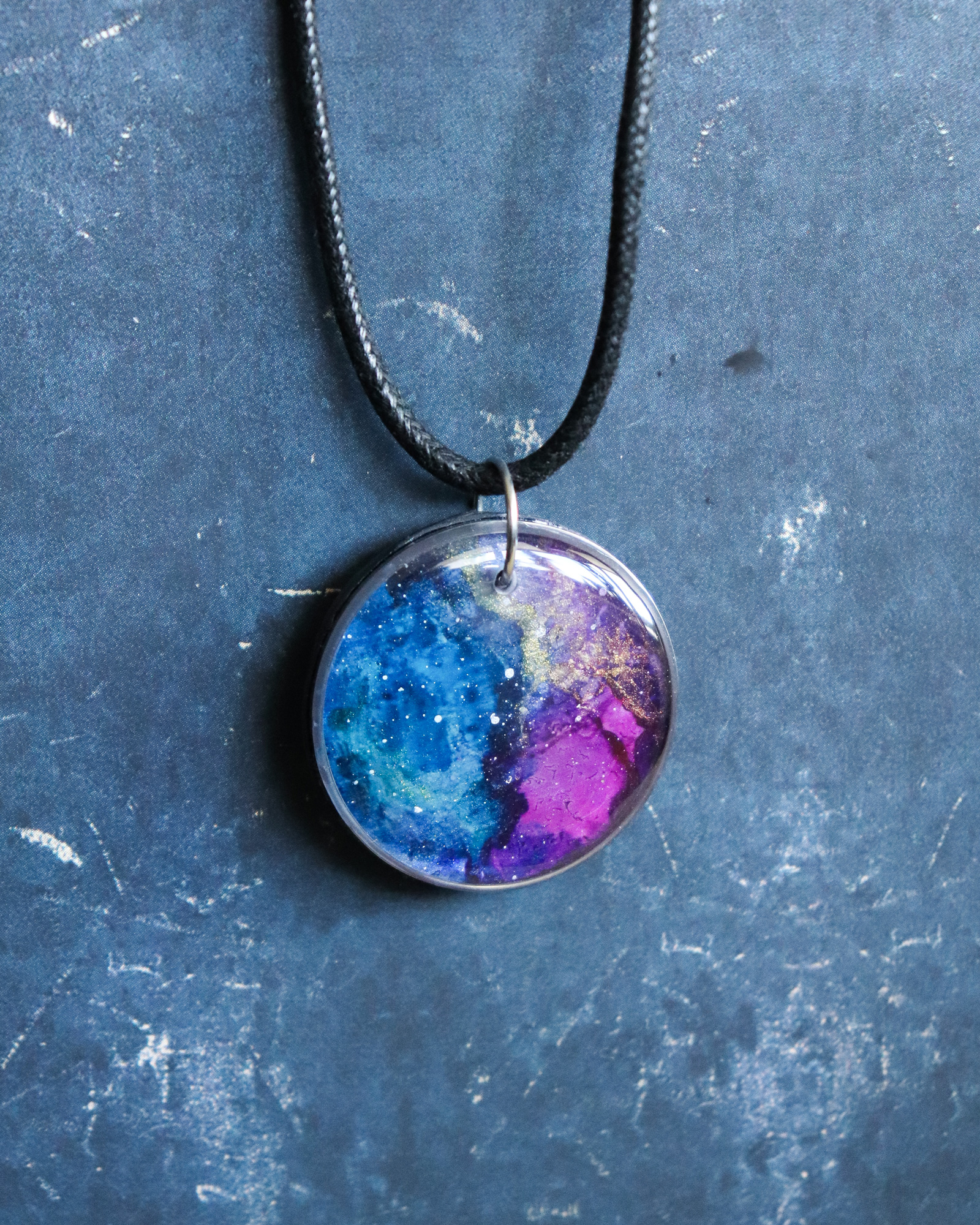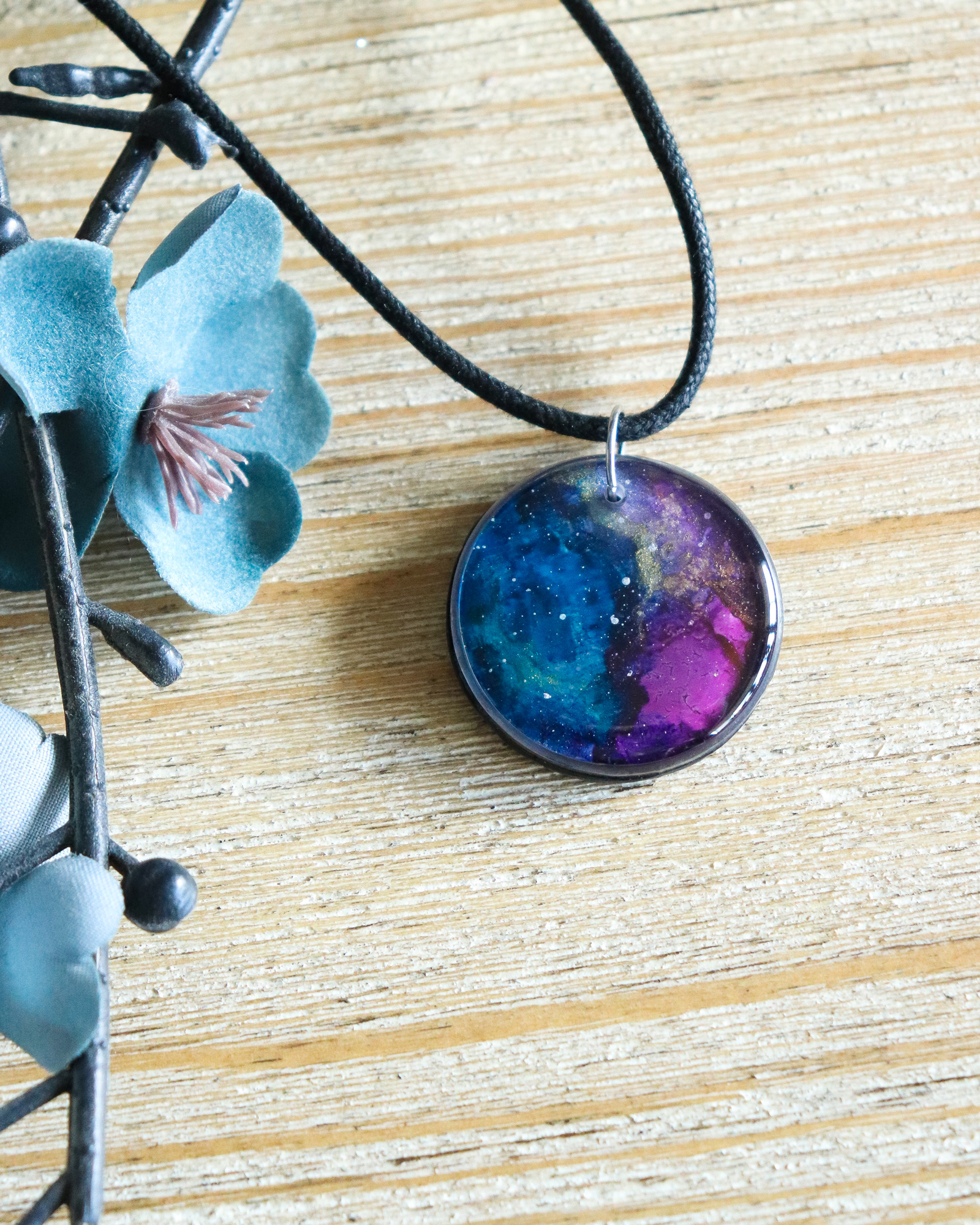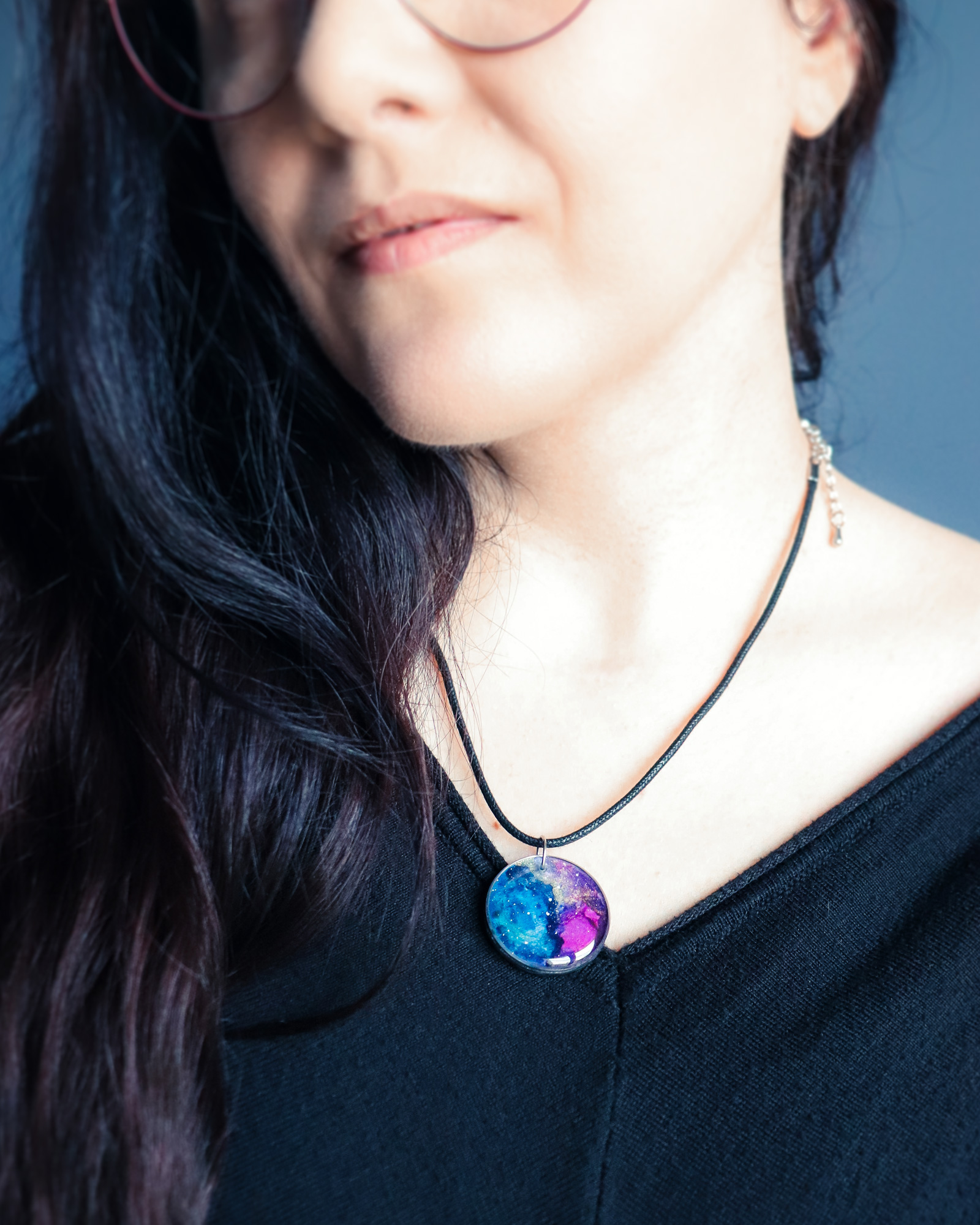 Et si vous portiez une nébuleuse autour du cou ? Voici un pendentif original et entièrement fait main pour les amoureux des étoiles et de l’espace.