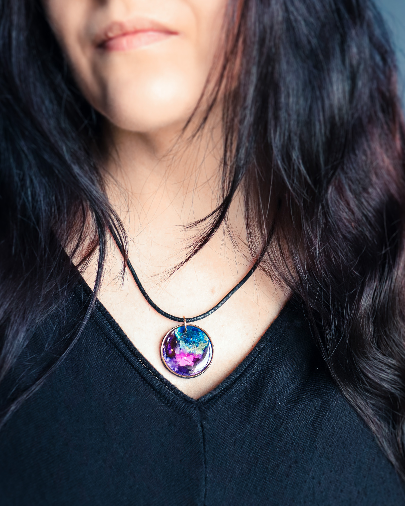 Et si vous portiez une nébuleuse autour du cou ? Voici un pendentif original et entièrement fait main pour les amoureux des étoiles et de l’espace.