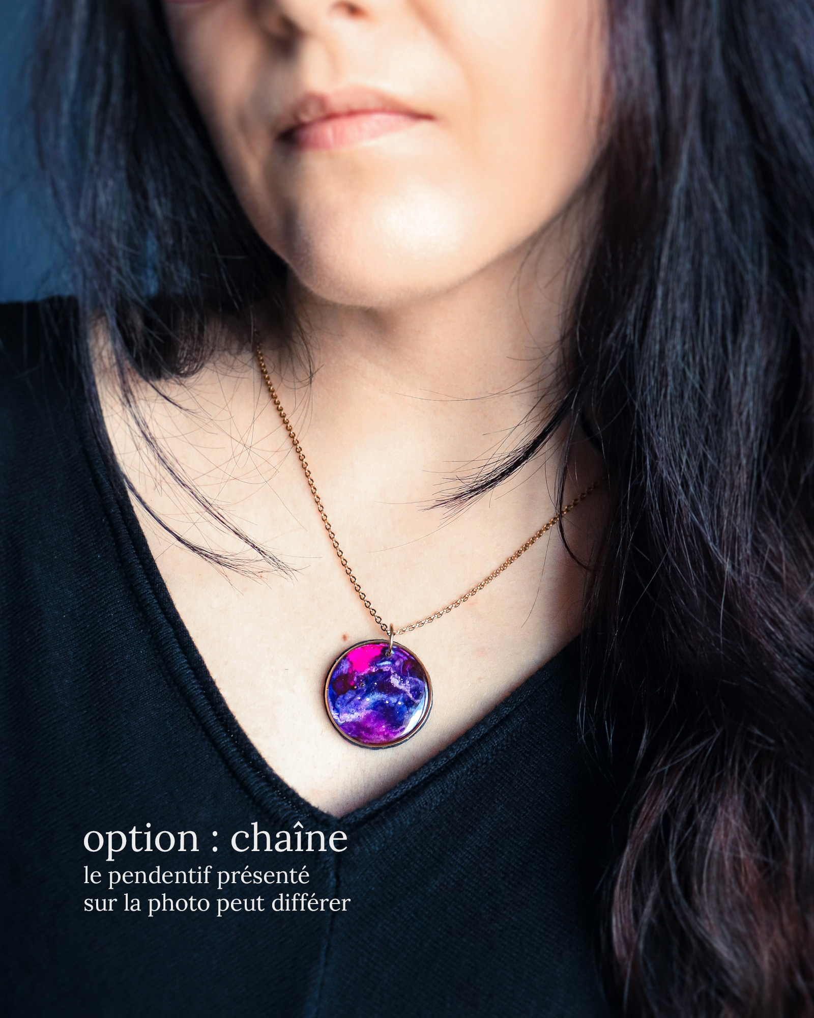 Et si vous portiez une nébuleuse autour du cou ? Voici un pendentif original et entièrement fait main pour les amoureux des étoiles et de l’espace.