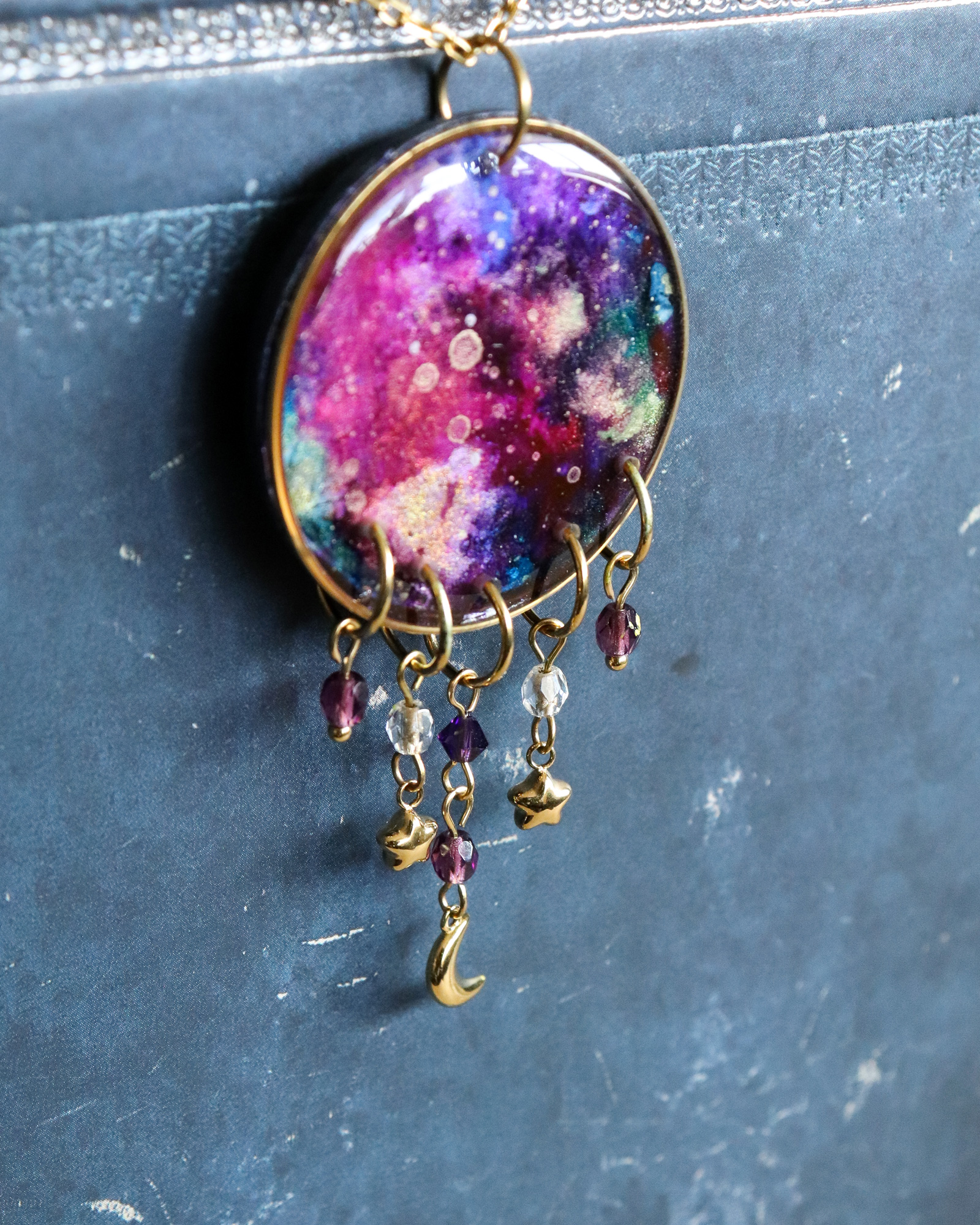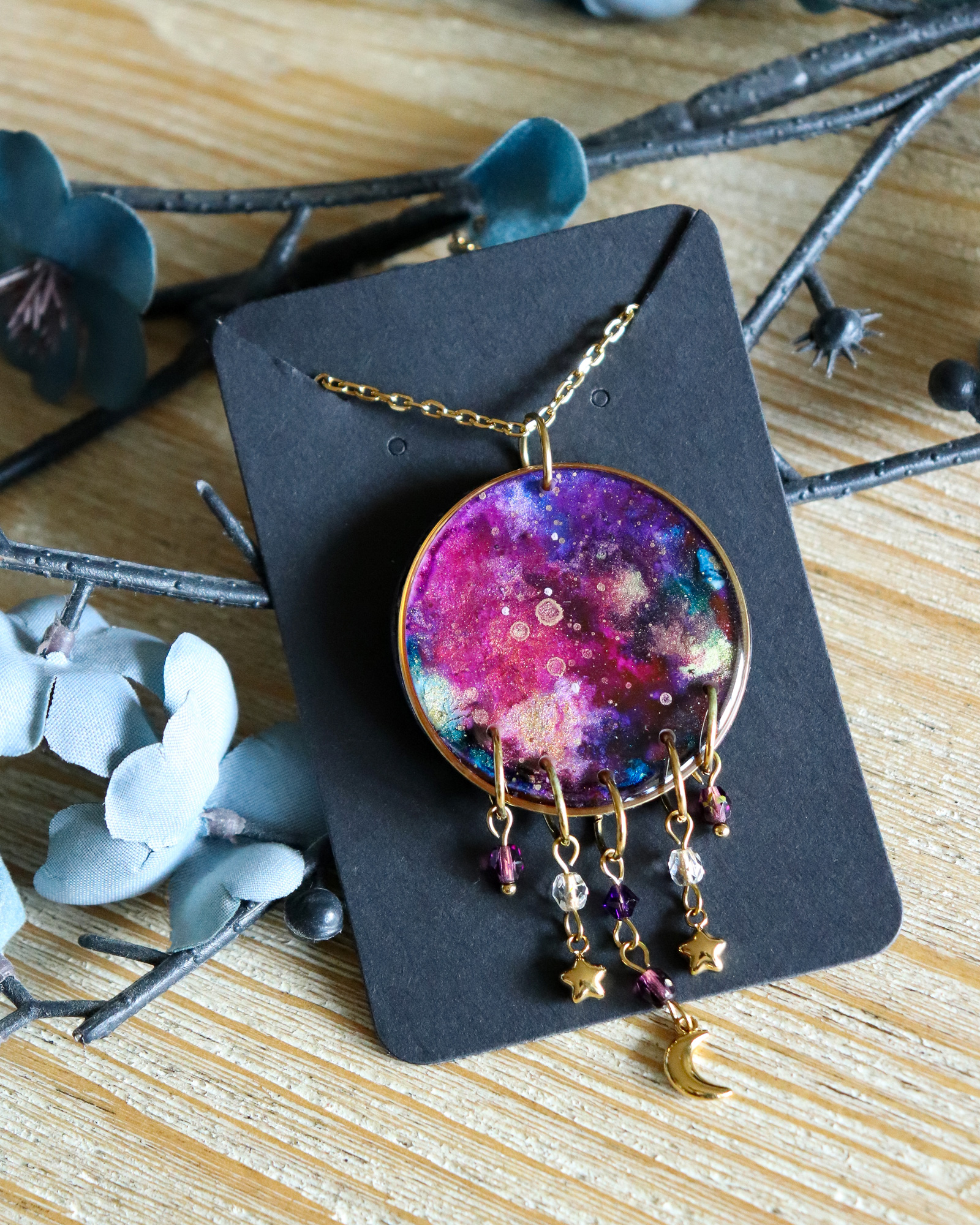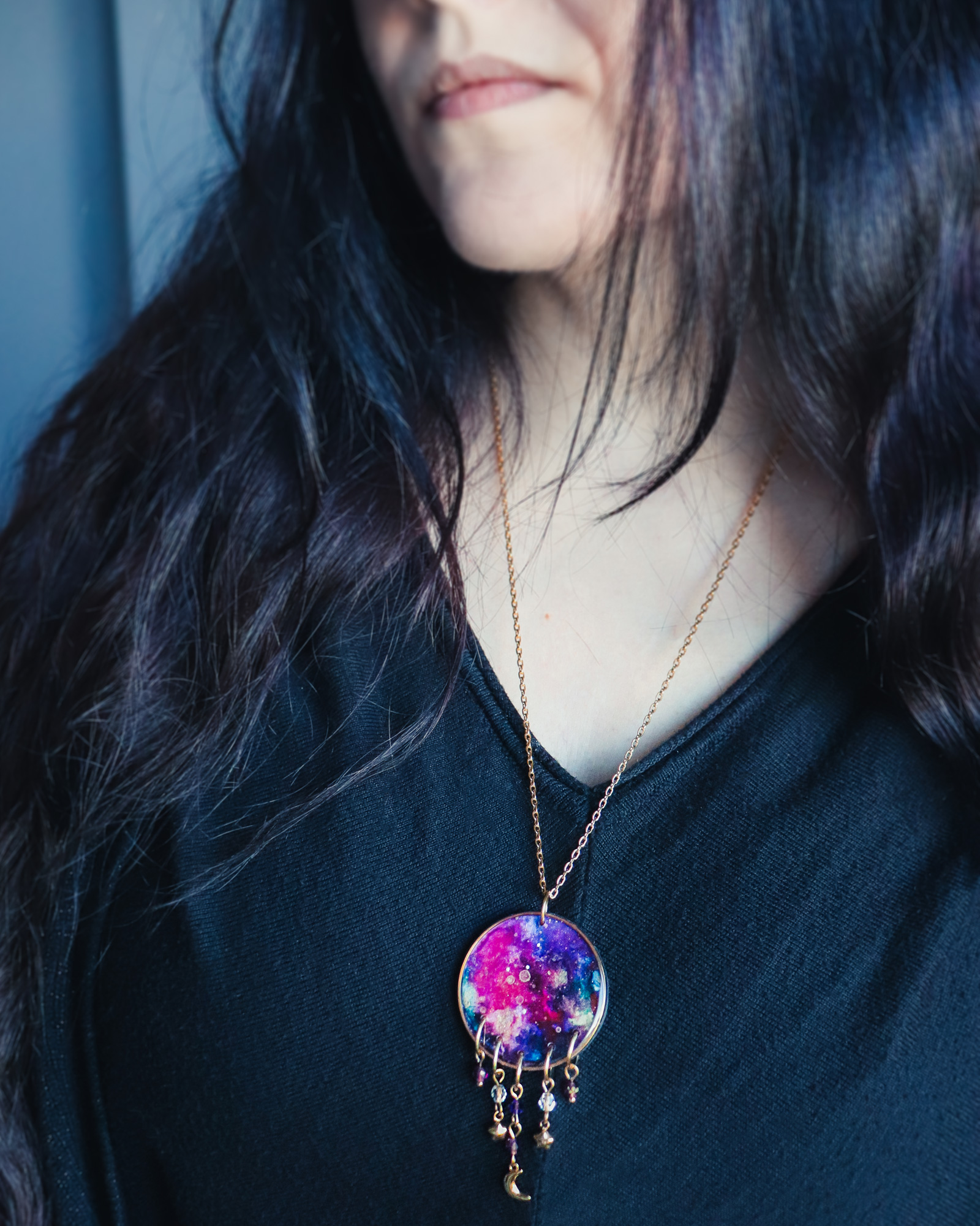 Et si vous portiez une nébuleuse autour du cou ? Voici un pendentif original et entièrement fait main pour les amoureux des étoiles et de l’espace.
