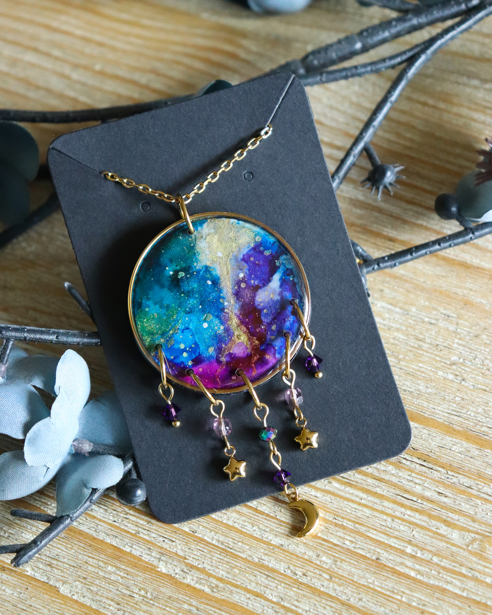 Et si vous portiez une nébuleuse autour du cou ? Voici un pendentif original et entièrement fait main pour les amoureux des étoiles et de l’espace.