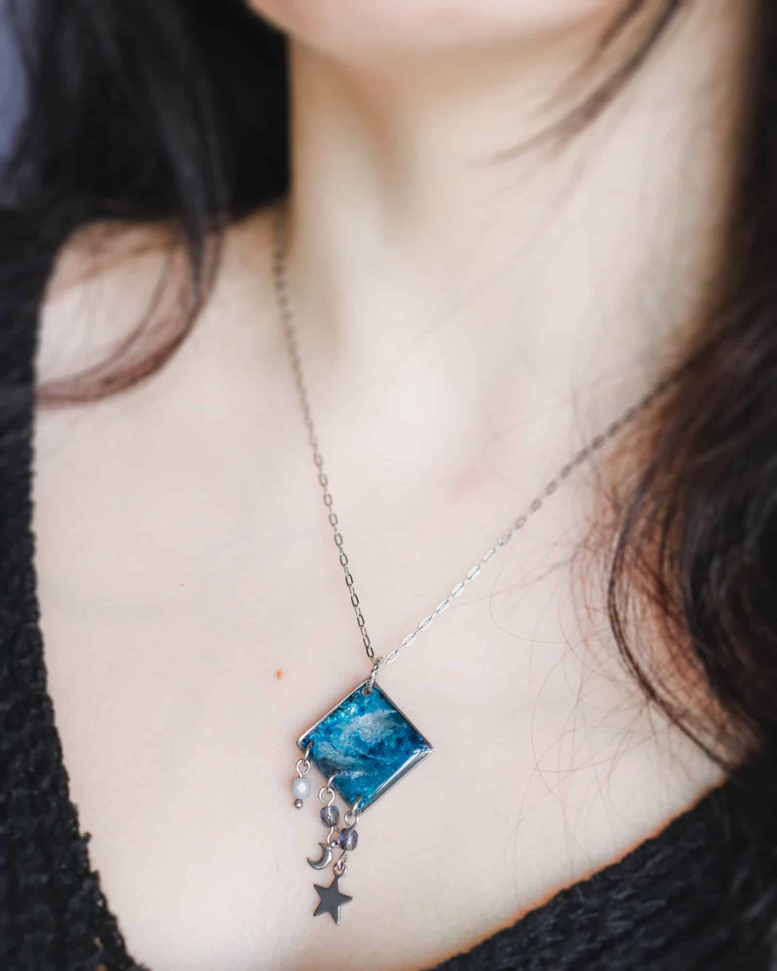 ✨ Veillez à garder votre bijou à l’abri de l’eau et de l’humidité, afin qu’il ne s’abîme pas. Évitez de le laisser trop longtemps au soleil : les UV font jaunir la résine avec le temps.