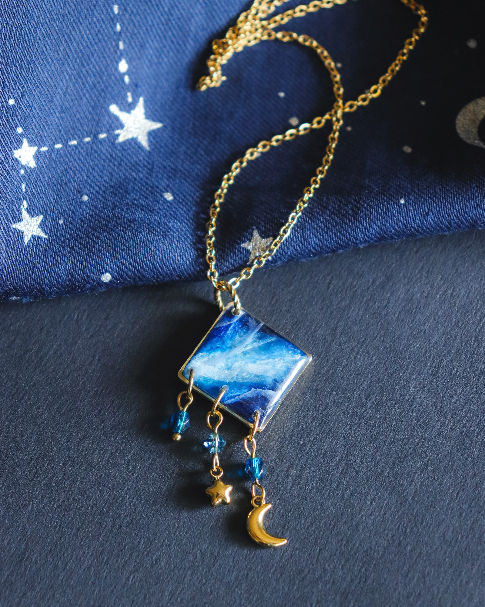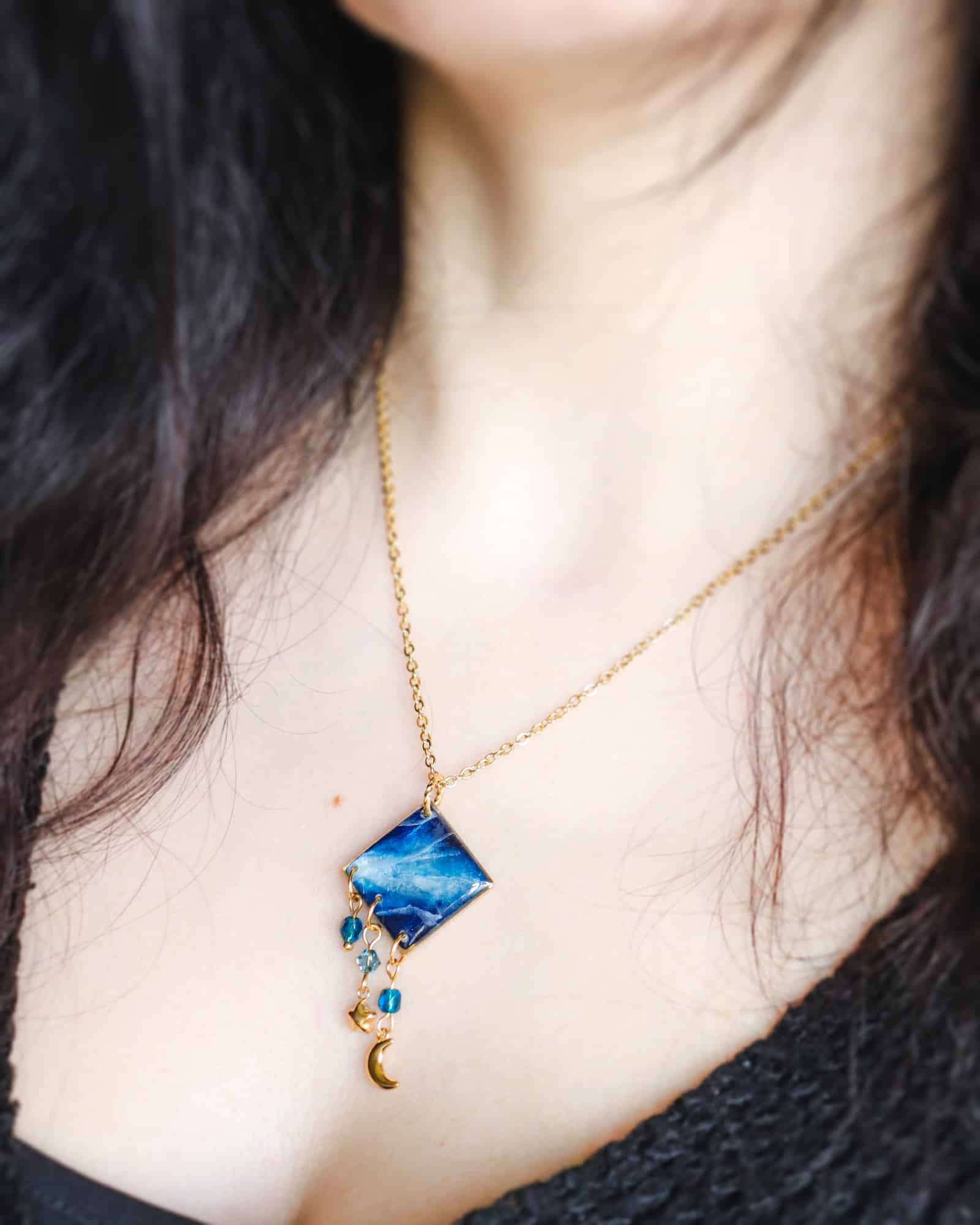 ✨ Veillez à garder votre bijou à l’abri de l’eau et de l’humidité, afin qu’il ne s’abîme pas. Évitez de le laisser trop longtemps au soleil : les UV font jaunir la résine avec le temps.