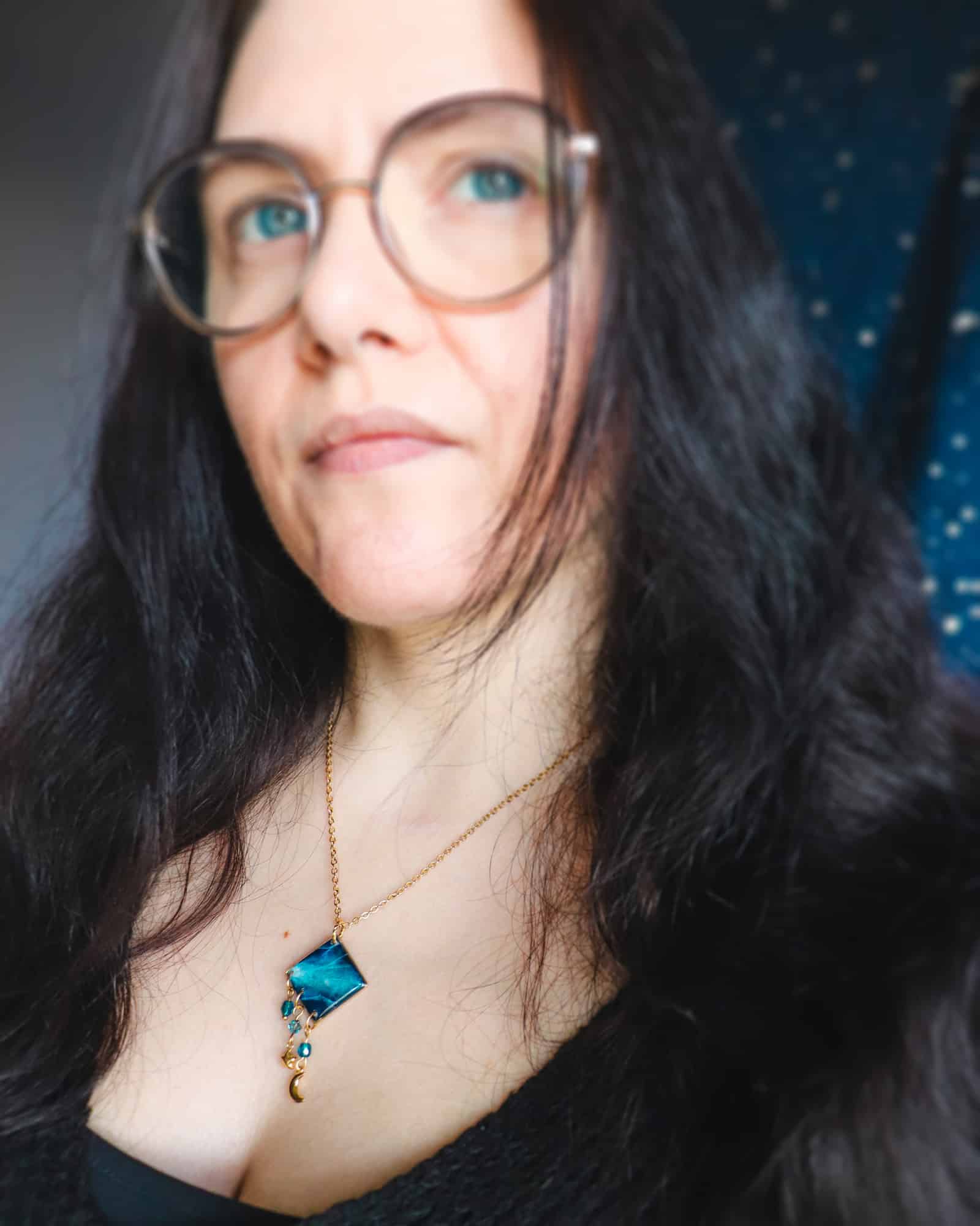 Les bijoux sont uniques et finement créés par notre magicienne préférée. J’ai acheté des boucles d’oreilles et 2 colliers. Les couleurs sont très belles et accrochent bien la lumière. J’avais peur que les boucles d’oreilles soient un peu lourdes à porter, mais au contraire, elles sont très légères 🙂